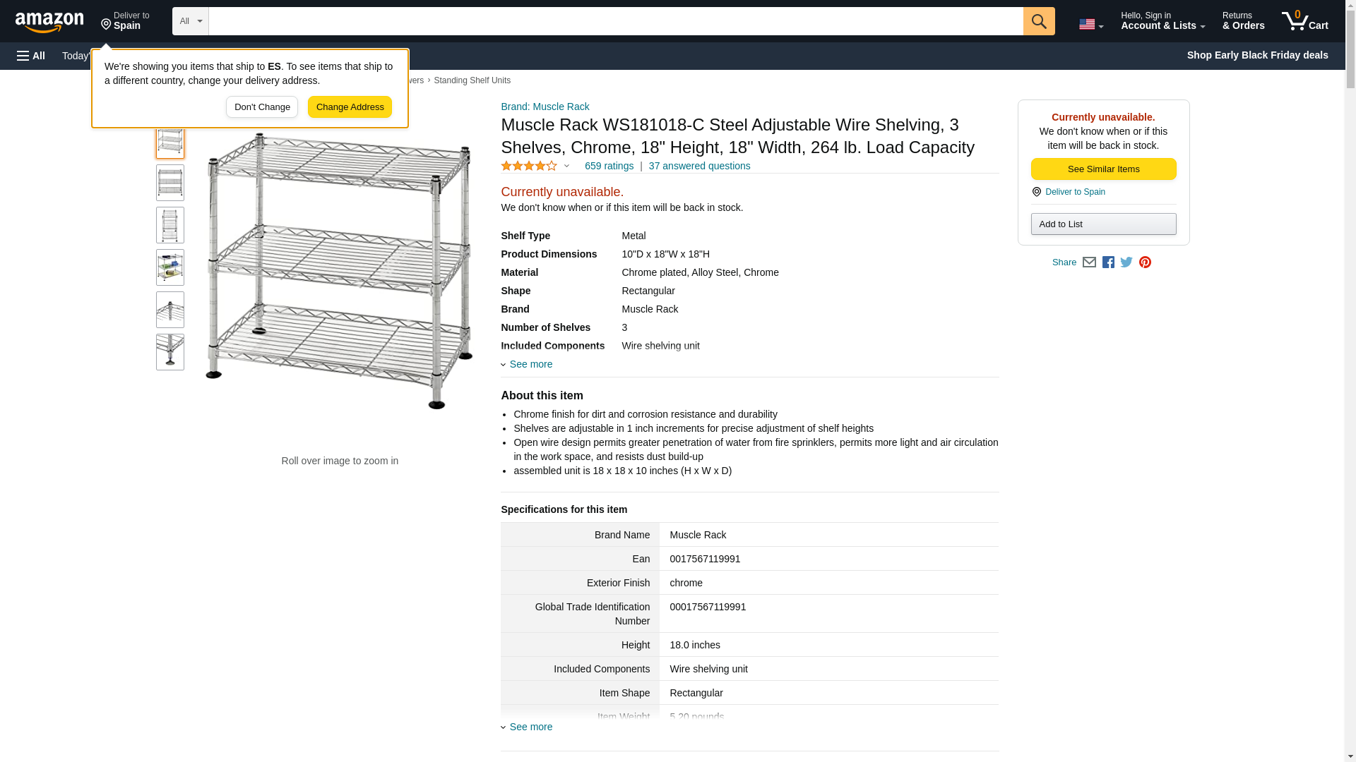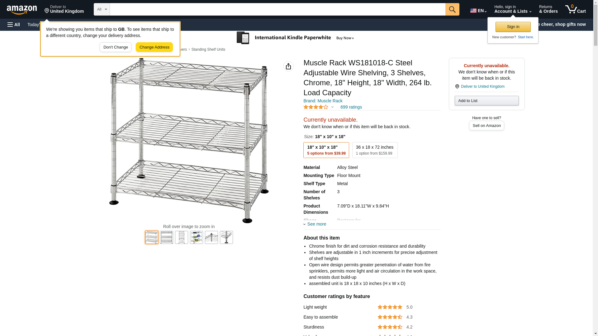 Muscle Rack WS181018-C Steel Adjustable Wire Shelving, 3 Shelves, Chrome, 18" Height, 18" Width, 264 lb. Load Capacity