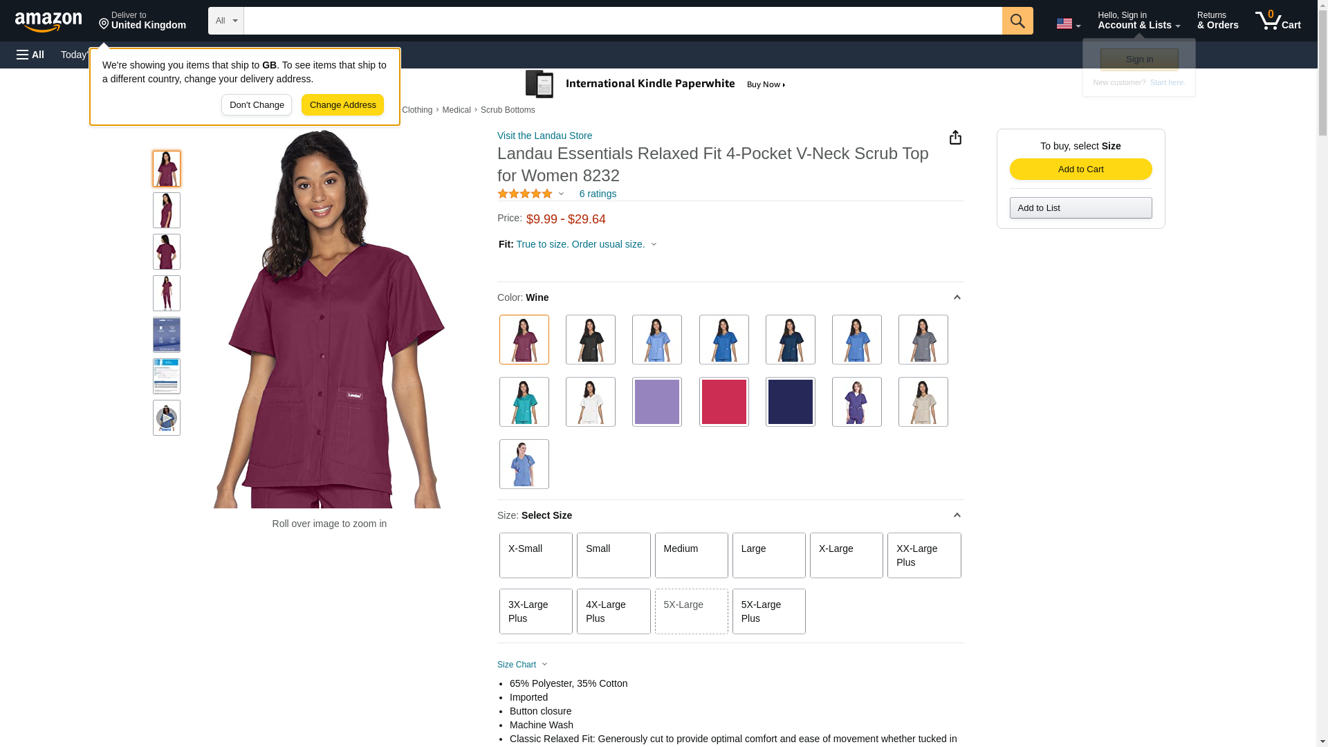Landau 8232-RWP-LGE - SCRUB TOP V 4 PKT SNAP FR - CIA Medical