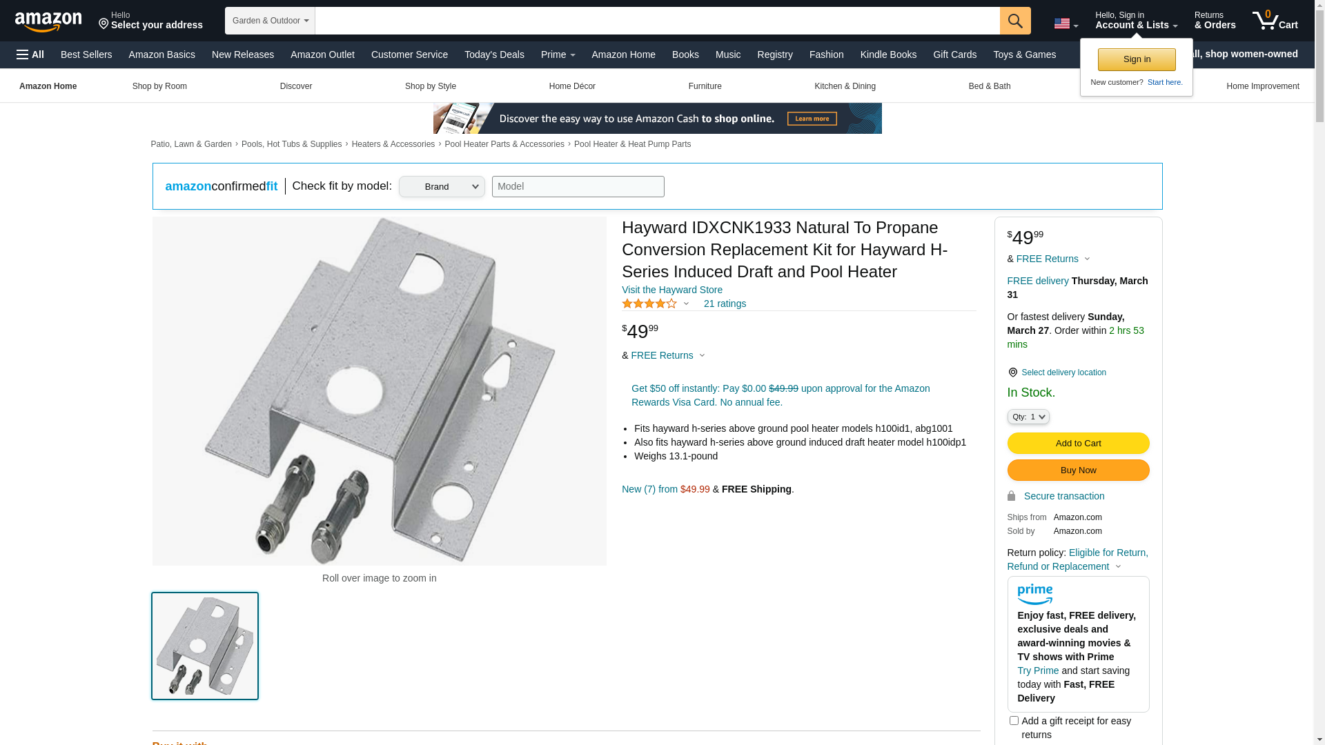 Hayward IDXCNK1933 Natural To Propane Conversion Replacement Kit for Hayward H-Series Induced Draft and Pool Heater