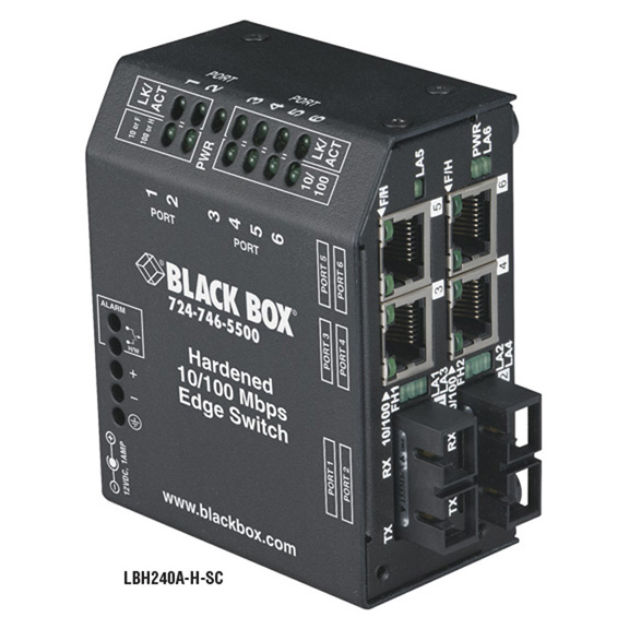 Black Box Hrd Switch - (4) 10/100 Rj45, (2) 100 mm, 1300Nm 2Km St, 24V Dc - LBH240A-H-ST-24