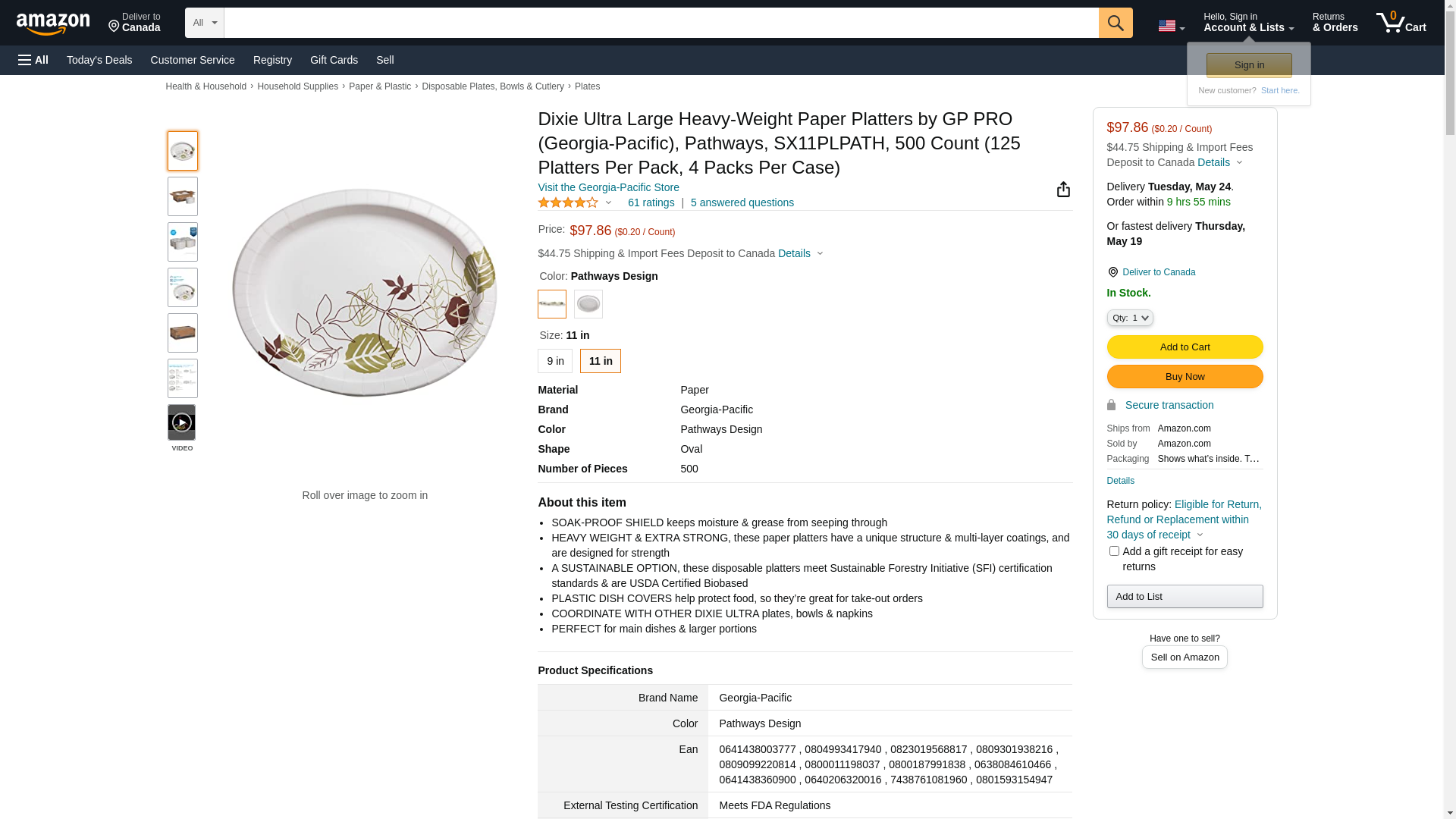 Dixie Ultra Heavy-Weight Oval Paper Platter by GP PRO (Georgia-Pacfic), Pathways, SX11PLPATH, 11" Length x 8.5" Width, 500 Count (125 Per Pack, 4 Packs Per Case)