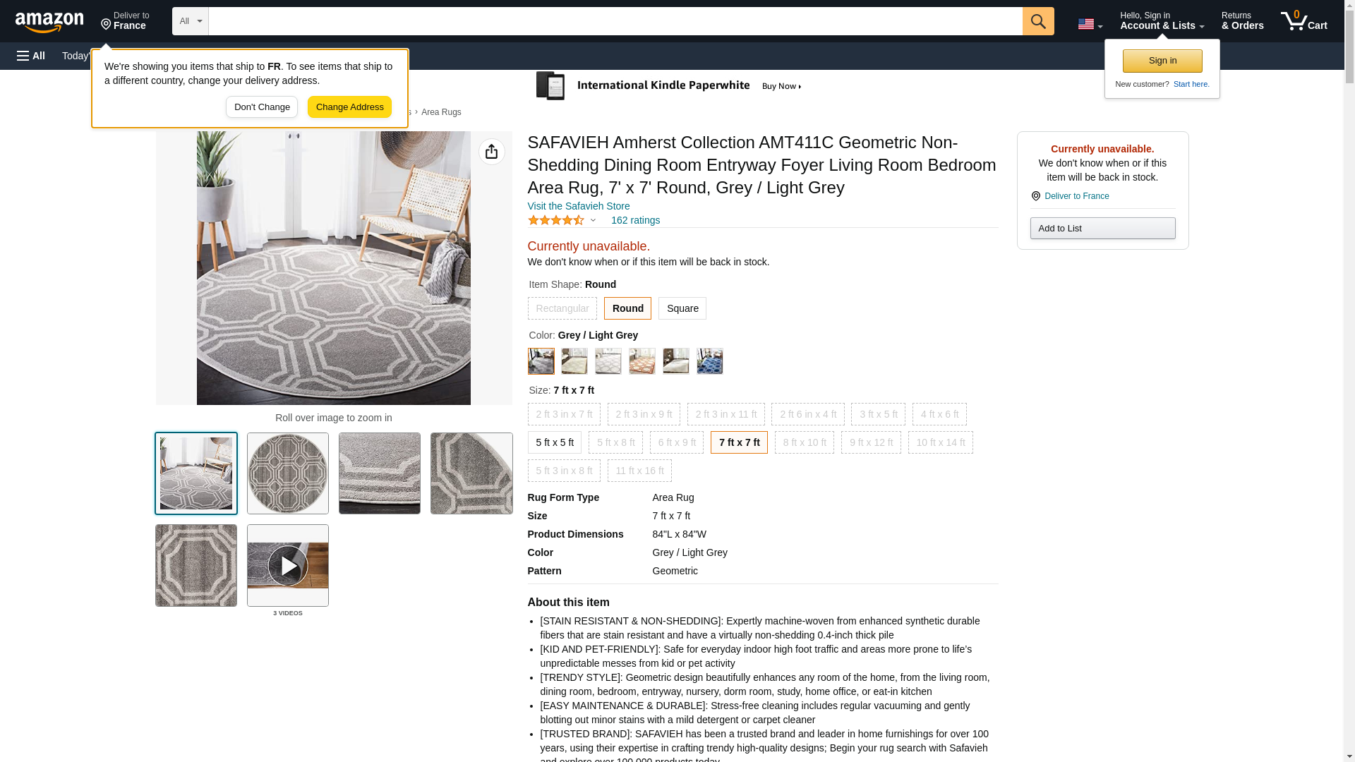 SAFAVIEH Amherst Collection 7' Round Grey / Light Grey AMT411C Geometric Non-Shedding Dining Room Entryway Foyer Living Room Bedroom Area Rug
