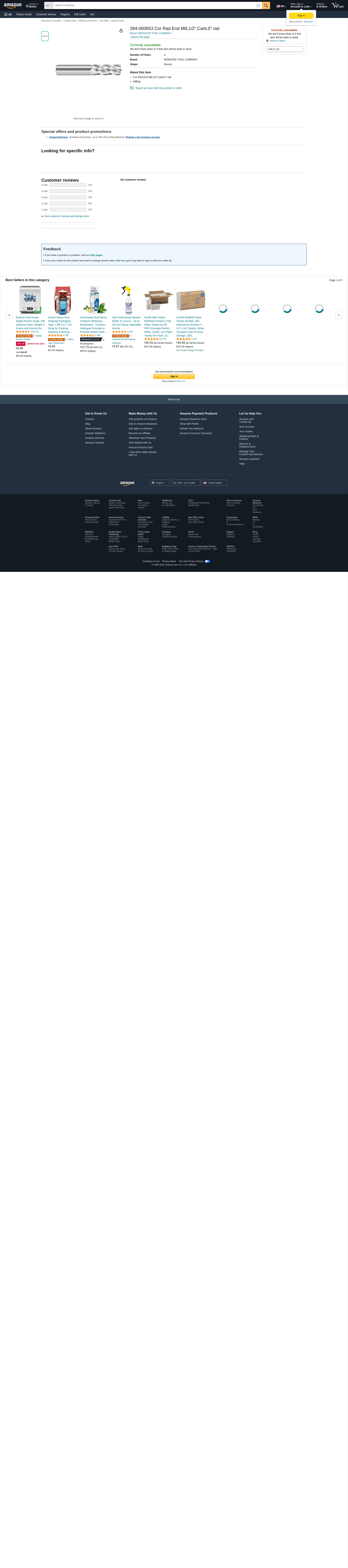 MONSTER TOOL COMPANY 284-000653 Cor Rad End Mill,1/2",Carb,0" rad