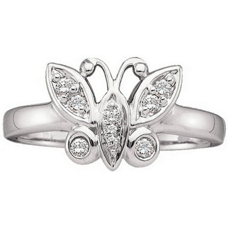 <p><span style="font-size:16px;"><b><u>Description</u></b><br /></span></p> <p><span style="font-size: 14px;">14kt White Gold Womens Round Diamond Butterfly Bug Cluster Ring 1/10 Cttw</span></p> <br /> <p><span style="font-size:16px"><u><b>Gemstone Details</b></u></span></p> <p><span style="font-size:14px">1/10 Carats total weight<br /><br />All diamonds are natural and conflict-free in origin<br /><br /><b>Round Diamond</b><br /></span></p> <li>1/10 ct.t.w.</li> <li>I2-I3 clarity</li> <li>J-K color</li> <li>Pave setting<br /><p><span style="font-size:16px"><u><b>Specifications</b></u><br /></span></p><p><span style="font-size:14px">14kt White Gold<br />Widest point width: 9 mm (.35 inches )<br />Width of shank: 2 mm<br />3.12 grams (approximately)<br />Ring size selectable</span></p><p><span style="font-size:11px">Combined diamond weight of 1/10 carats total weight represents a range of 0.09 - 0.11 cts. t.w.</span></p></li>