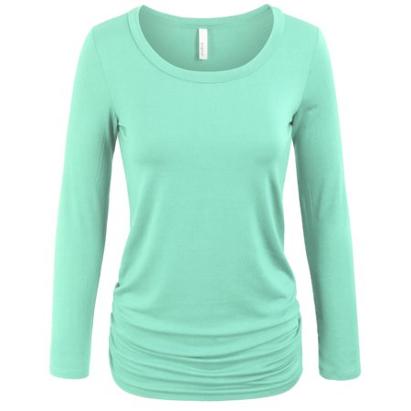 KOGMO Womens Long Sleeve Solid Basic Drape Top Side Shirring Tunic (S-3X)