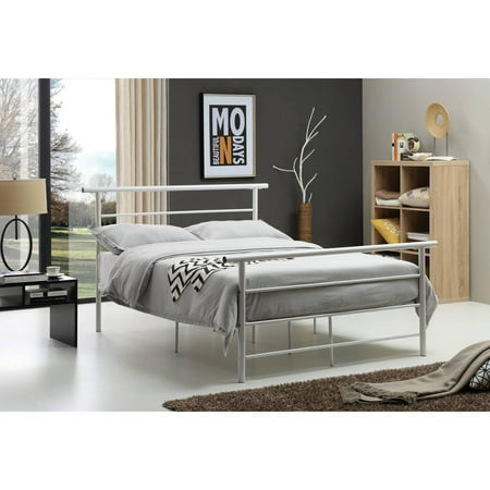 <ul> <li>Includes headboard, footboard, slats, rails and leg supports</li> <li>Available in Black-Silver, Bronze or Whitefinish</li> <li>Metal Frame</li> <li>No box spring needed</li> <li>Twin H40.7" W47.2" D78"Full H40.7" W62.3" D78"Queen H40.7" W68.3" D83"</li> </ul>