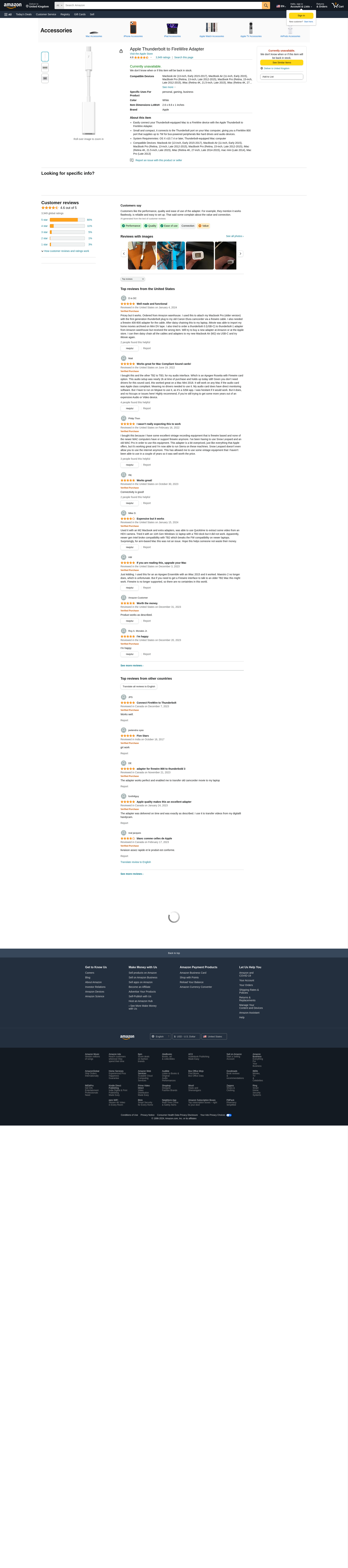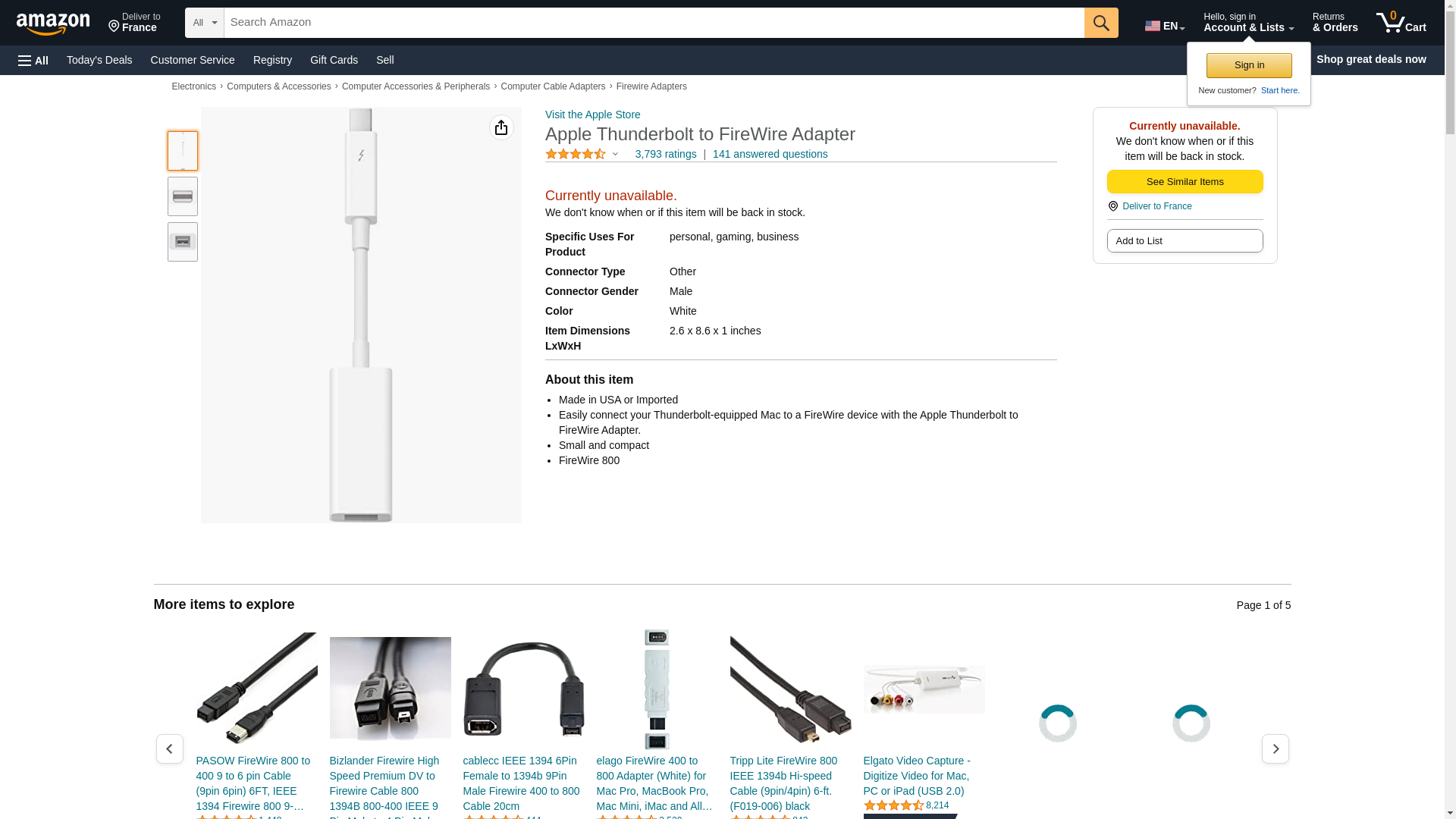 Apple Thunderbolt to FireWire Adapter for Mac