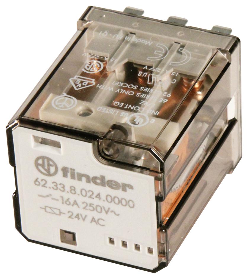 FINDER 62.33.8.024.0000 RELAY, POWER, 3PDT, 24VAC, 16A, SOCKET