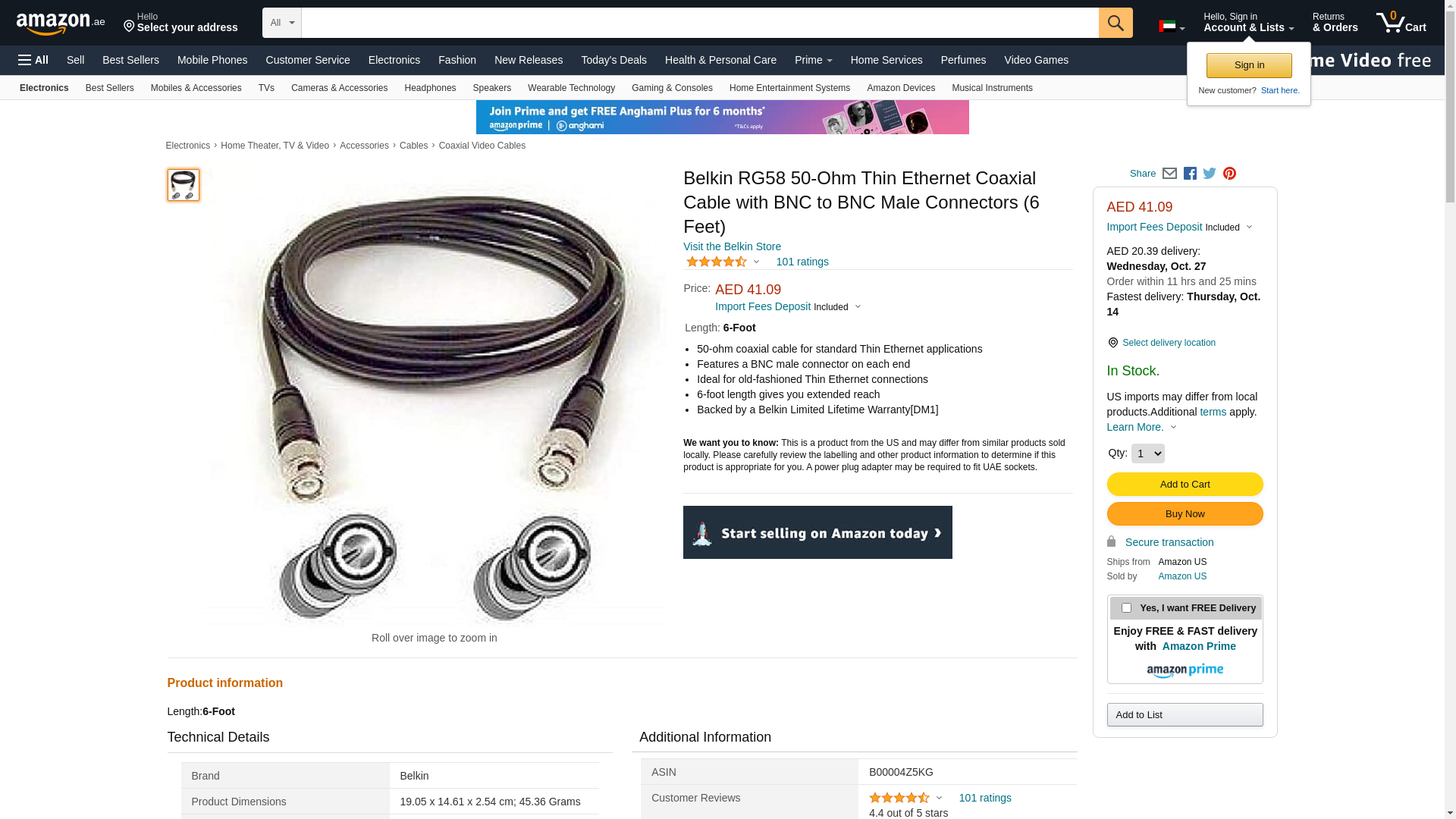 | Feature | Network Cable Type: Network Cable| Cable Technology: Coaxial| Left Connector Gender: Male| Right Connector Gender: Male| Left Connector Type: BNC| Right Connector Type: BNC| Networking / Compliant Standards: RG-58| Features: Includes 2 male BNC connectors; Comes with a Belkin Lifetime Warranty ;50-Ohm coaxial cable| Length: 6 feet| Enclosure Color: Black| Service & Support Type: Limited lifetime warranty |