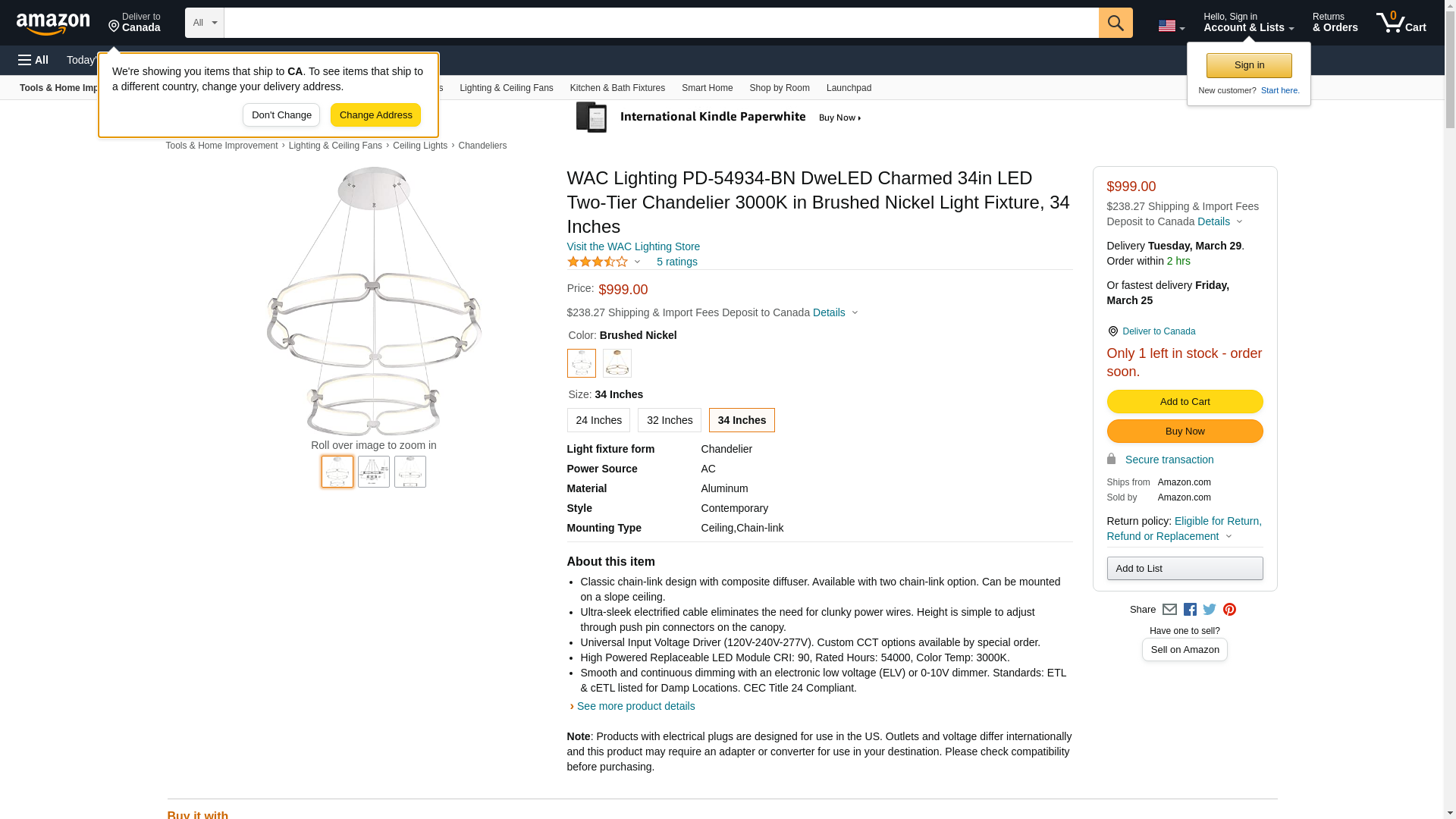 WAC Lighting PD-54934-BN DweLED Charmed 34in LED Two-Tier Chandelier 3000K in Brushed Nickel Light Fixture, 34 Inches