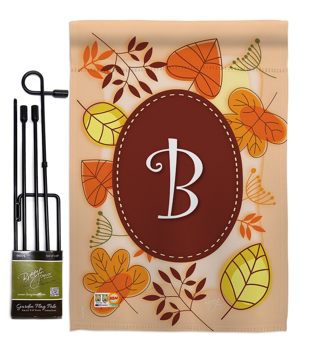 Breeze Decor BD-HA-GS-130028-IP-BO-D-US09-BD 13 x 18.5 in. Autumn B Initial Fall Harvest & Impressions Decorative Vertical Double Sided Garden Flag Set with Banner Pole