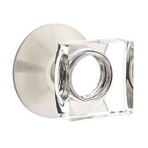 Crystal Door Hardware Collection - Half Dummy Modern Square Crystal Door Knob with Modern Rose in Satin Nickel by Emtek - 5057MSC.HALF.US15 | MyKnobs