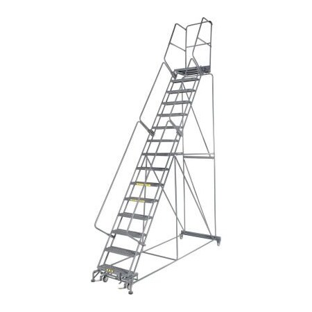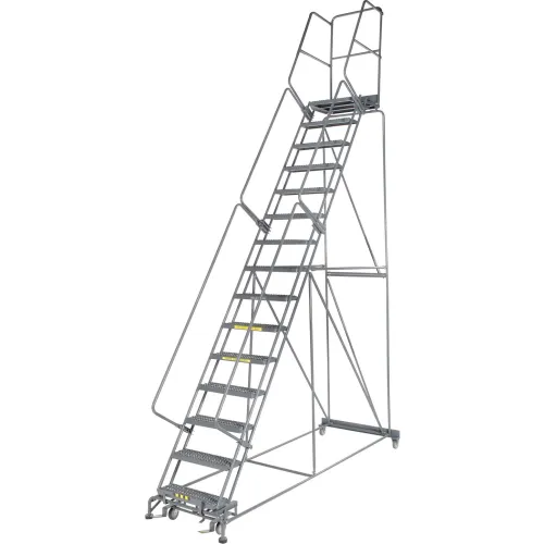 Grip 24"W 15 Step Steel Rolling Ladder 21"D Top Step - FS154021G