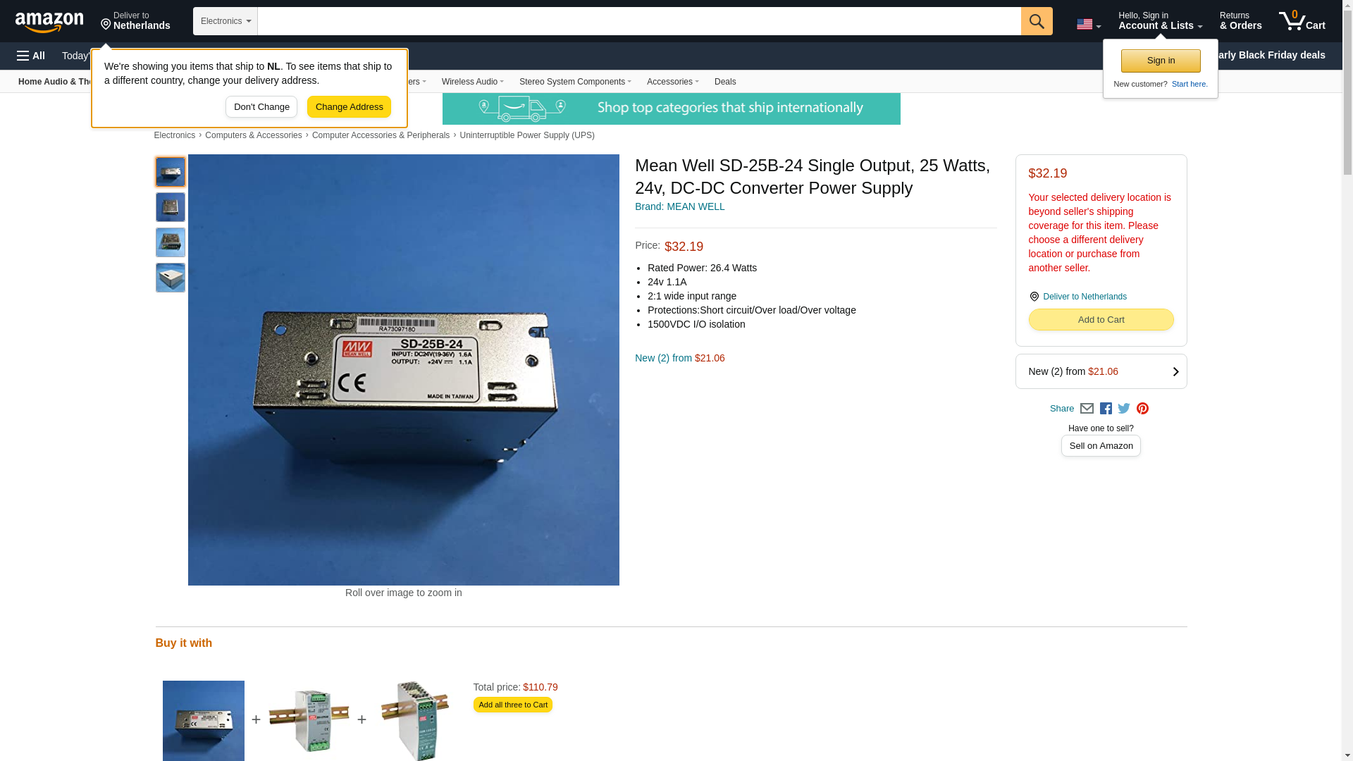 ![]() powersupplymall.com | SD-25B-24 | 1 | 120 | 1 | 1 @ $24.95 |