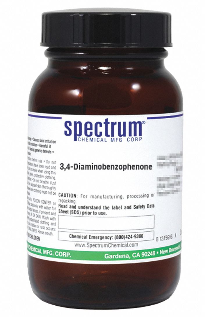 3,4-Diaminobenzophenone, Concentration 100 Percent, CAS Number 39070-63-8, Molecular Weight 212.25, Chemical Formula C13H12N2O, Chemical Container Material Amber Glass, Chemical Container Type Bottle, Chemical Grade Reagent, Chemical Container Size 25 g, Chemical Family Type Acids, Shelf Life 24 mo