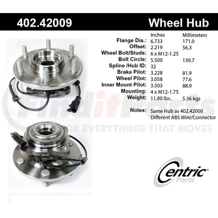 Centric Parts, Inc. 402.42009 Wheel Hub & Bearing Assembly