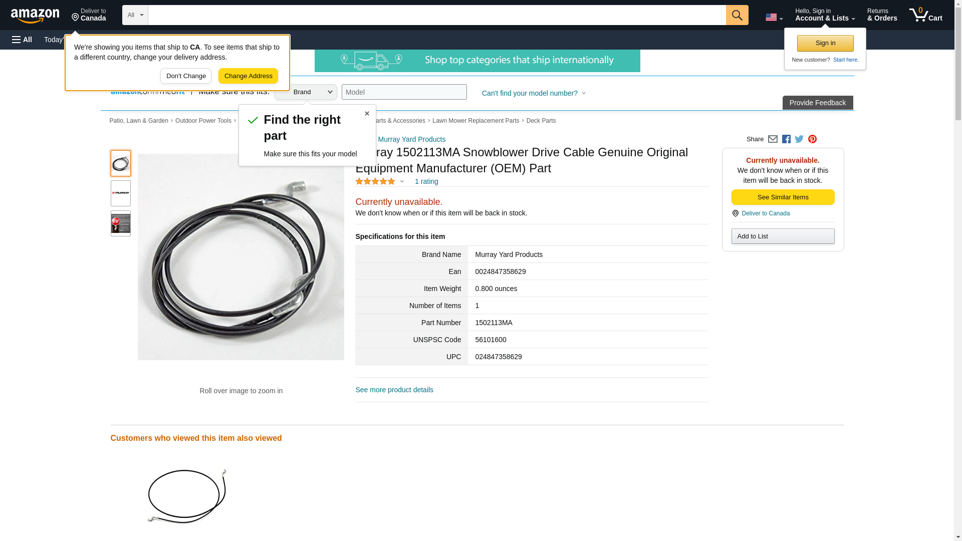Murray 1502113MA Snowblower Drive Cable Genuine Original Equipment Manufacturer (OEM) Part