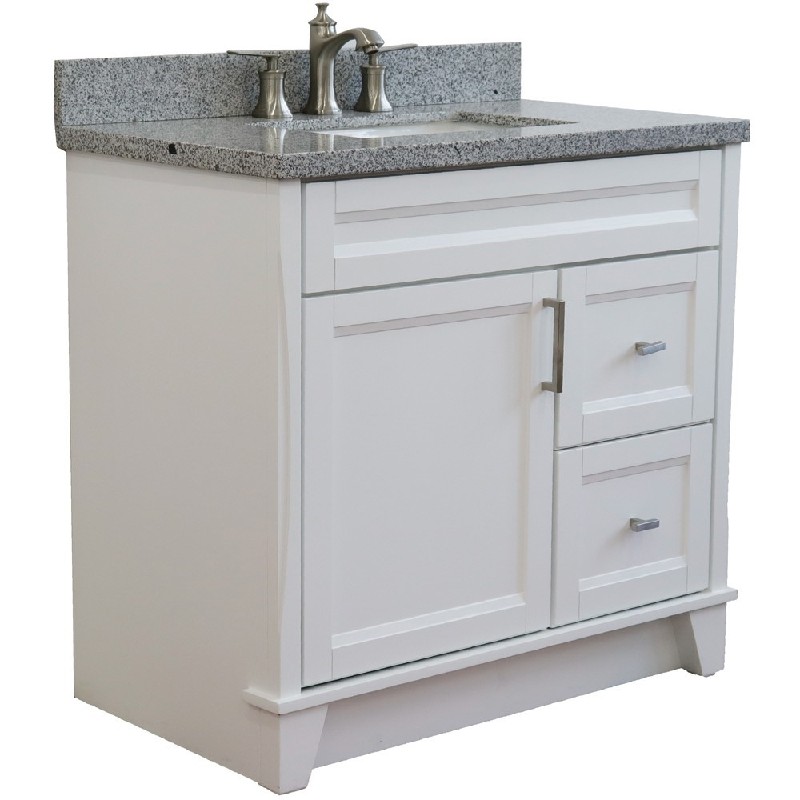 BELLATERRA 400700-37L-WH-GYRC TERNI 37 INCH SINGLE SINK VANITY WITH GRAY GRANITE TOP AND CENTER RECTANGULAR BASIN,...