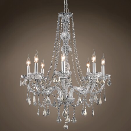 Joshua Marshal Elizabeth 8 Light 28" Chrome Chandelier with Golden Teak Crystal & Led Bulb