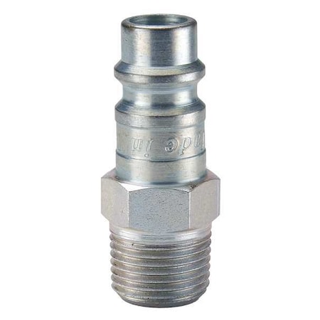 ' Coupler Plug, Tru-Flate Interchange Type, Pipe Size 1/4 In., (M)NPT Hose Connection, Body Size 1/4 In., Max. Flow 25 cfm, Steel, Max. Pressure 300 psi, Locking Type Push-to-Connect, Zinc Plated Finish, Temp. Range -40 Degrees to 250 Degrees F '
