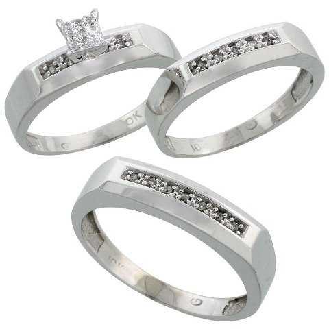 World Jewels 14K White Gold 0.14 CT. Brilliant Cut Diamond Wedding Band Set, Size 7.5