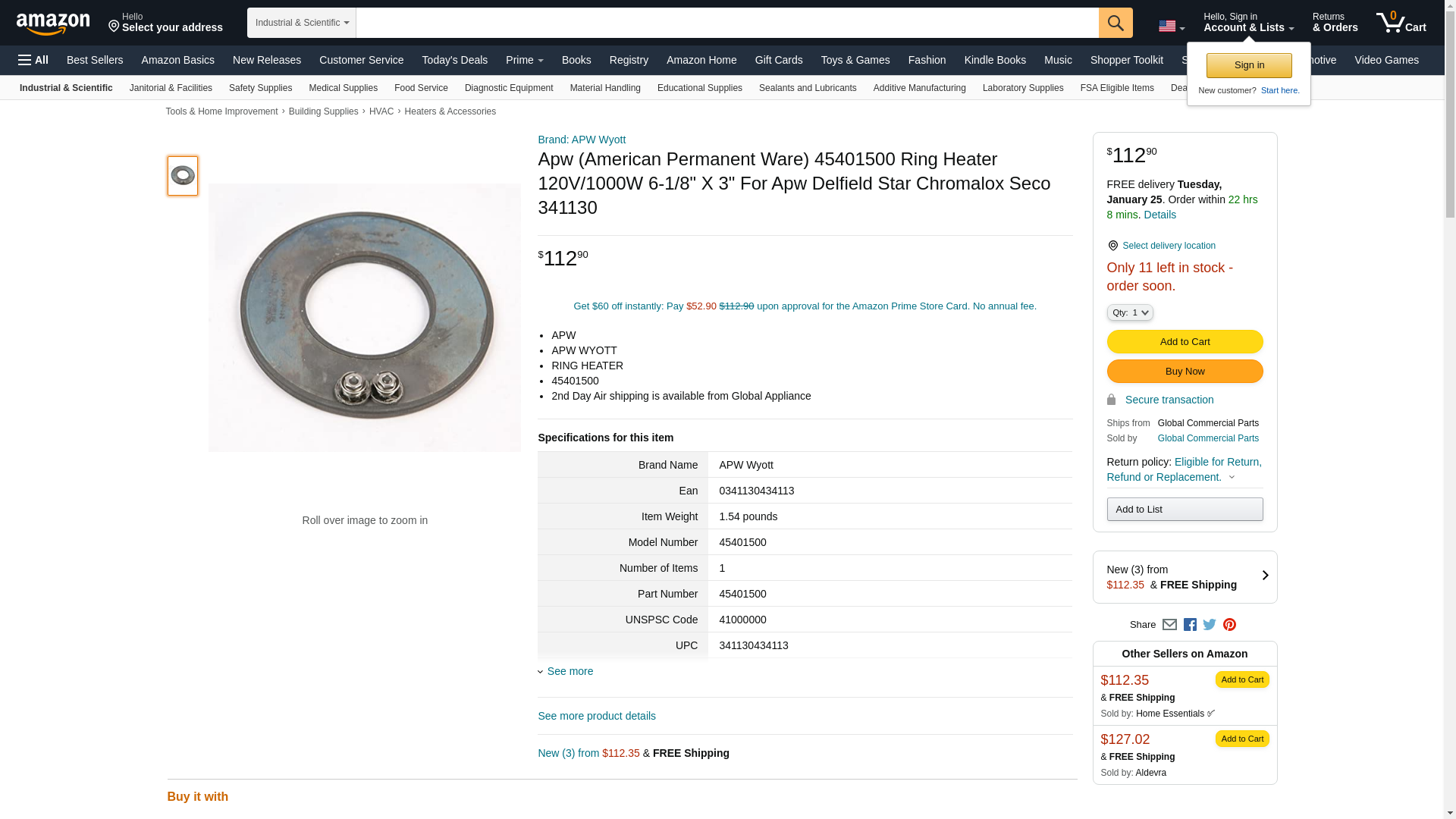 | Partstown | APW45401500 | 1 | 1 | 1 @ $217.97 | |