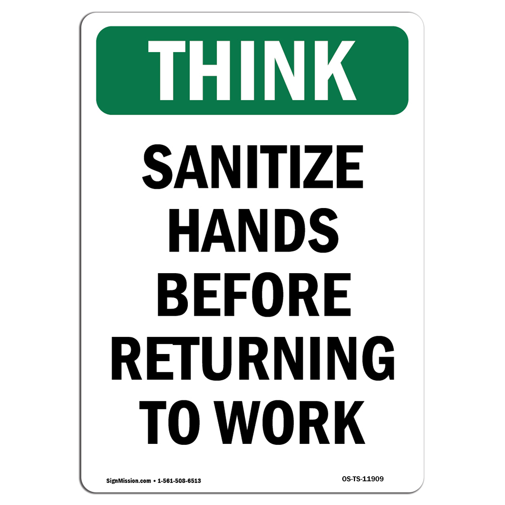 SignMission OS-TS-RD-1824-V-11909 OSHA Think Sign - Sanitize Hands Before Returning to Work