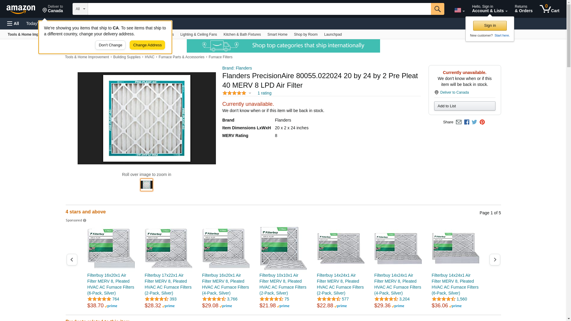 Flanders PrecisionAire 80055.022024 20 by 24 by 2 Pre Pleat 40 MERV 8 LPD Air Filter