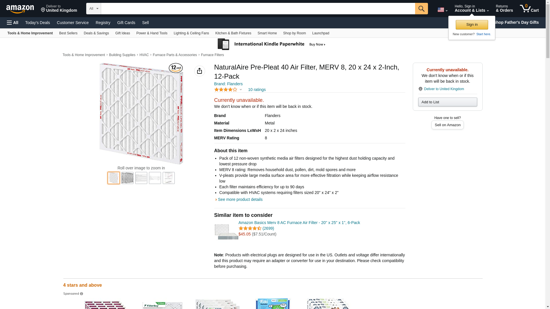 NaturalAire Pre-Pleat 40 Air Filter, MERV 8, 20 x 24 x 2-Inch, 12-Pack