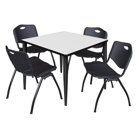 - Versatile table and chair set includes one 42-inch square table with modern black tapered legs and 4 Black "M" Stack Chairs