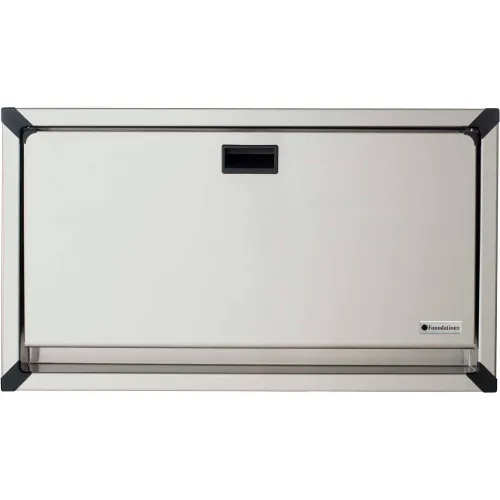 The Foundations Surface Mount Horizontal Stainless Clad Changing Station (100SSC-SM) delivers an upscale appearance with its clean and stainless-steel design that fits virtually all decors. The changing station body is made from a durable, easy-to-clean, high-density polyethylene with a brushed 304 stainless steel shell along with a stainless-steel frame. The heavy-duty steel-on-steel hinge provides increased strength and support for a load capacity of 250 lbs. 5-year limited warranty. The 100SSC-SM changing station features built-in paper liner dispensers, a safety strap system, and a convenient bag hook to improve upon both safety and functionality. The 100SSC-SM changing station was manufactured with care in the USA. Note that this changing station includes a 5-year manufacture warranty. The 100SSC-SM Changing Station meets several safety standards, including ADA and ASTM standards. All necessary hardware is included with this changing station, including mounting hardware. This changing station is designed to be highly durable and versatile in your public or commercial space.