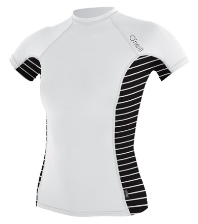 O'Neill Women's Side Print Short Sleeve Crew White/Coastal/Black Swimsuit Top