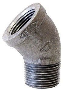 - <b>Price For:</b> Each <b>Item</b>: Street Elbow, 45 Degrees <b>Max. Pressure</b>: 300 psi@150 Degrees F <b>Standards</b>: UL: FM Approved: ASME B16.3 <b>Fitting Connection Type</b>: FNPT x MNPT <b>Specific Fitting Shape</b>: 45 Degrees Street Elbow <b>Basic Fitting Material</b>: Metal <b>Fitting Schedule/Class</b>: Class 150 <b>Temp. Range</b>: -20 Degrees to 350 Degrees F <b>Pipe Fitting Material</b>: Malleable Iron <b>Basic Fitting Shape</b>: Elbow