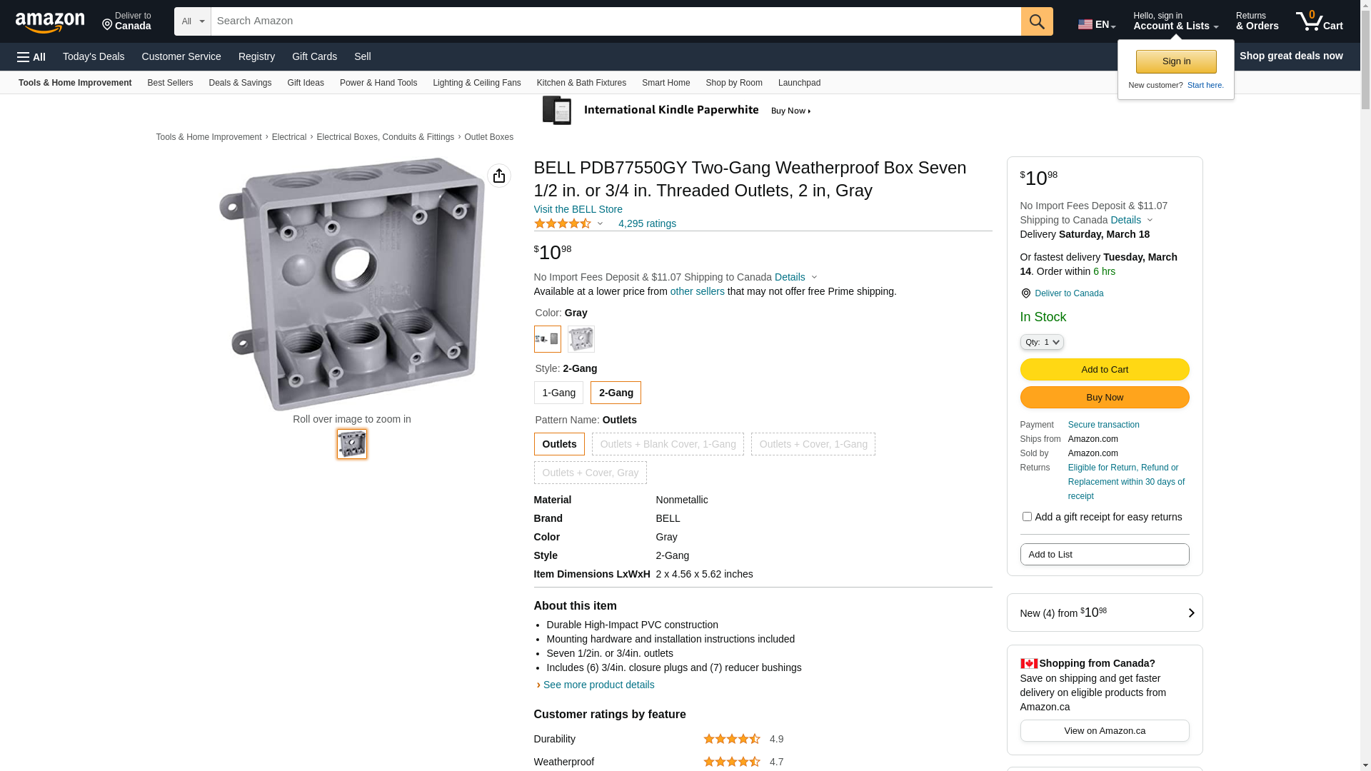 BELL PDB77550GY Two-Gang Weatherproof Box Seven 1/2 in. or 3/4 in. Threaded Outlets, 2 in, Gray
