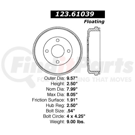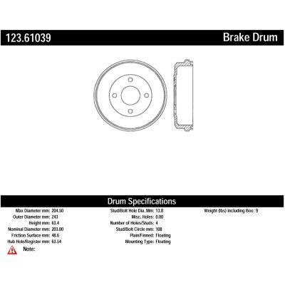 Centric Parts 123.61039 C-Tek Standard Brake Drum