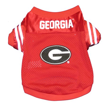 Pet jerseys are constructed of a polyester material, offering a V-neck cut and sizing to allow for a comfort fit (high cut on stomach area for the male dog). Jerseys are decorated in full team colors with official team logos. Machine Washable. Jersey sizing available are small - Length 12- 14 Girth 16-18 ; Medium Length 16-18 Girth 20-22 ; Large Length 20.24 Girth 24-28 .