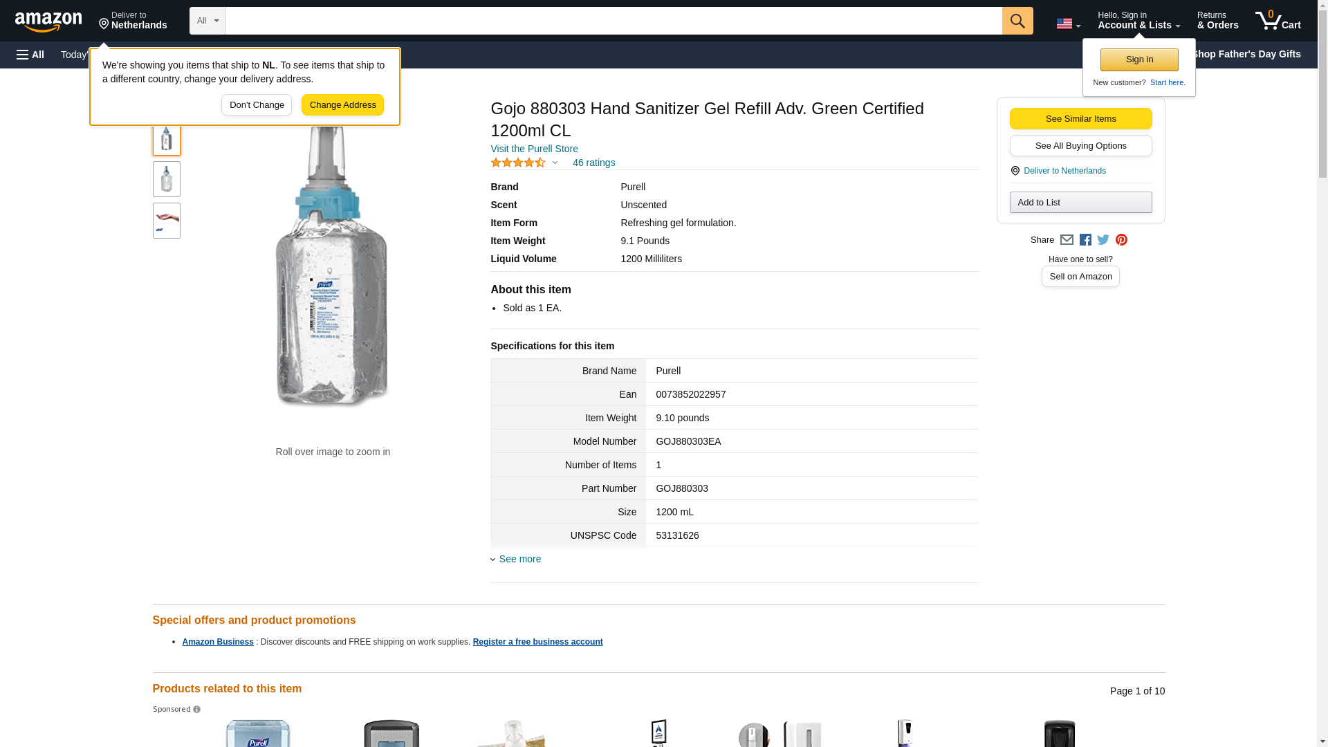 Gojo 880303 Hand Sanitizer Gel Refill Adv. Green Certified 1200ml CL