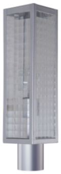 - DETAILS: Constructed of Cast Aluminum with Chromite Finish and Clear Square Patterned Glass Shade