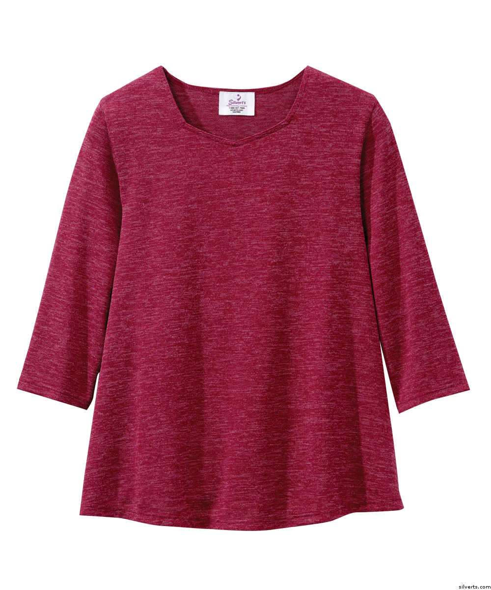 Silverts 236100804 Super Soft Wheelchair Fashion Diamond-Neck Open Back Adaptive Top for Womens - Large, Bordeaux