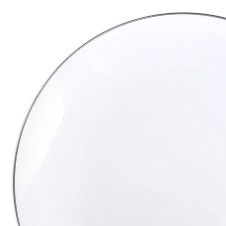 10.25" White with Silver Rim Organic Round Disposable Plastic Dinner Plates (120 Plates), 120PK
