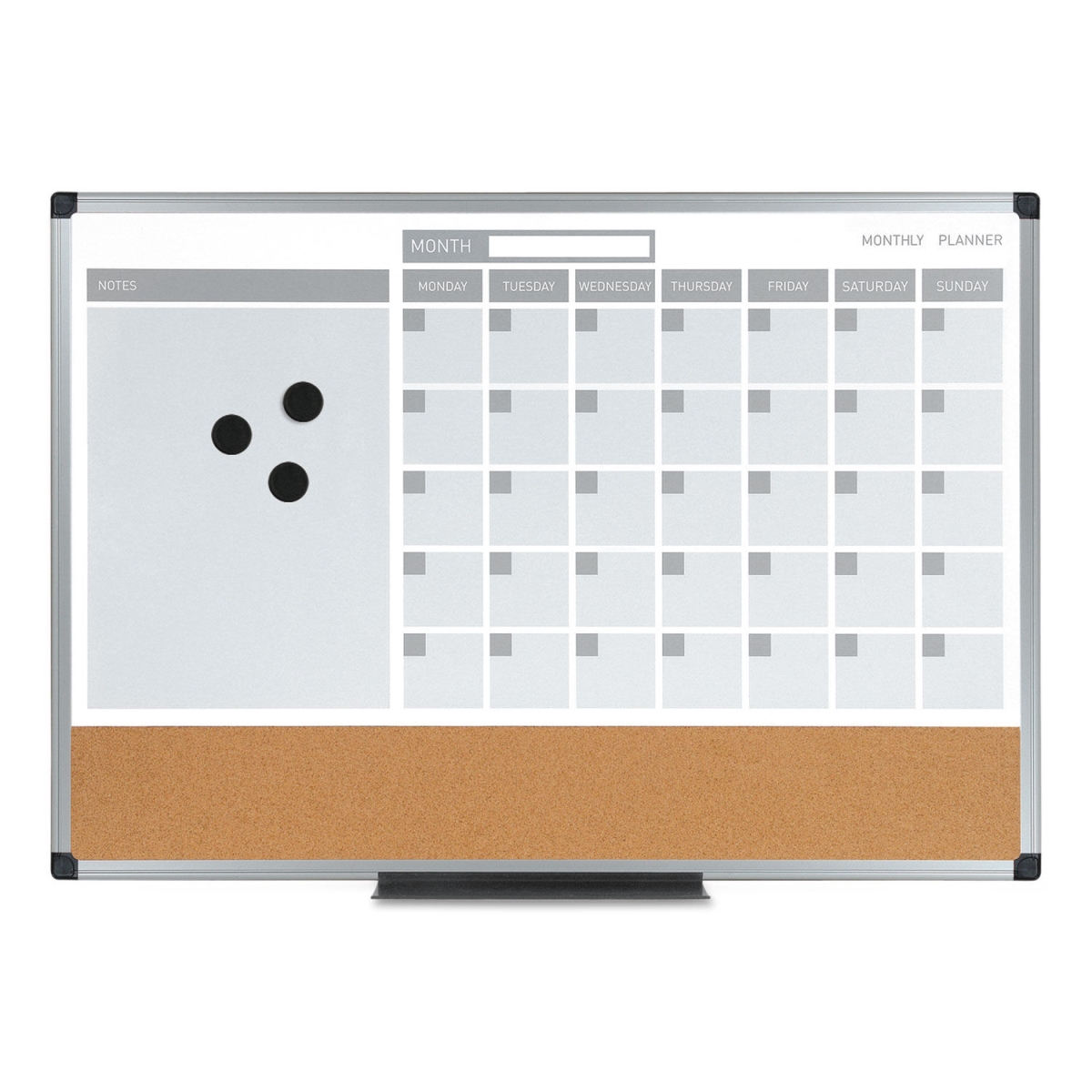 MasterVision 3-In-1 Calendar Dry Erase Planning Board, 24" x 36", Aluminum Frame