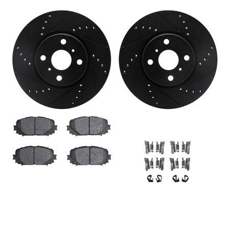 8512-76172, Rotors-Drilled and Slotted-Black w/ 5000 Advanced Brake Pads incl. Hardware, Zinc Coated