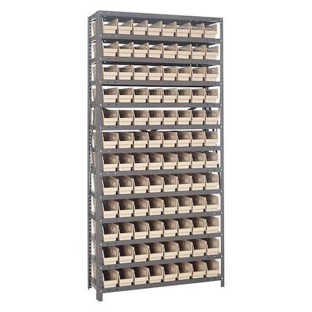 Quantum Storage Systems 1875-103IV Steel Shelving Unit with 4" Shelf Bins, 18" D x 36" W x 75" H, Ivory
