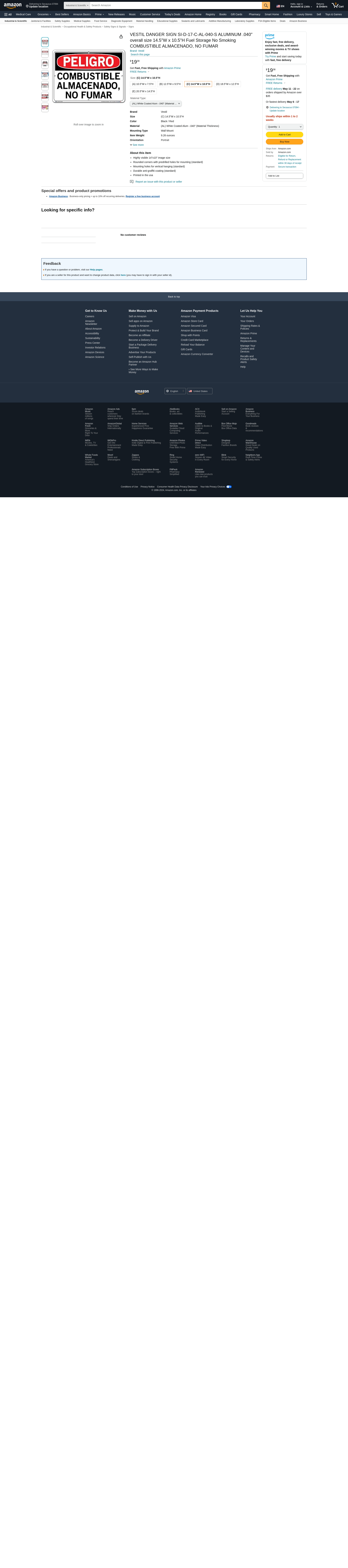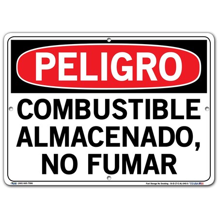 VESTIL DANGER SIGN SI-D-17-C-AL-040-S ALUMINUM .040" overall size 14.5"W x 10.5"H Fuel Storage No Smoking COMBUSTIBLE ALMACENADO, NO FUMAR