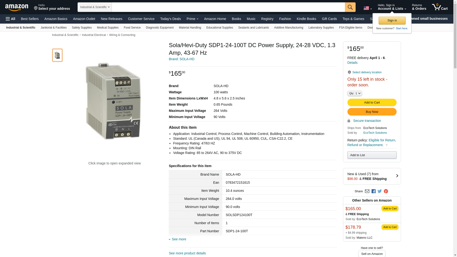 ![]() Galco | SDP1-24-100T-SOLA | 1 | 1 | 1 | 1 @ $183.89 |