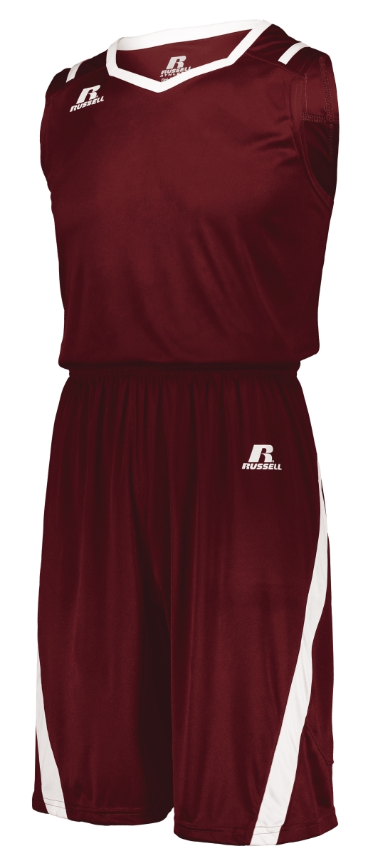 Russell 3B2X2M.CWH.S Adult Athletic Cut Shorts, Cardinal & White - Small