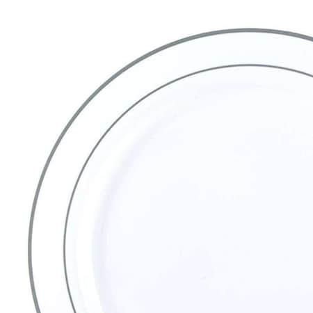 10.25" White with Silver Edge Rim Plastic Dinner Plates 120 Plates
