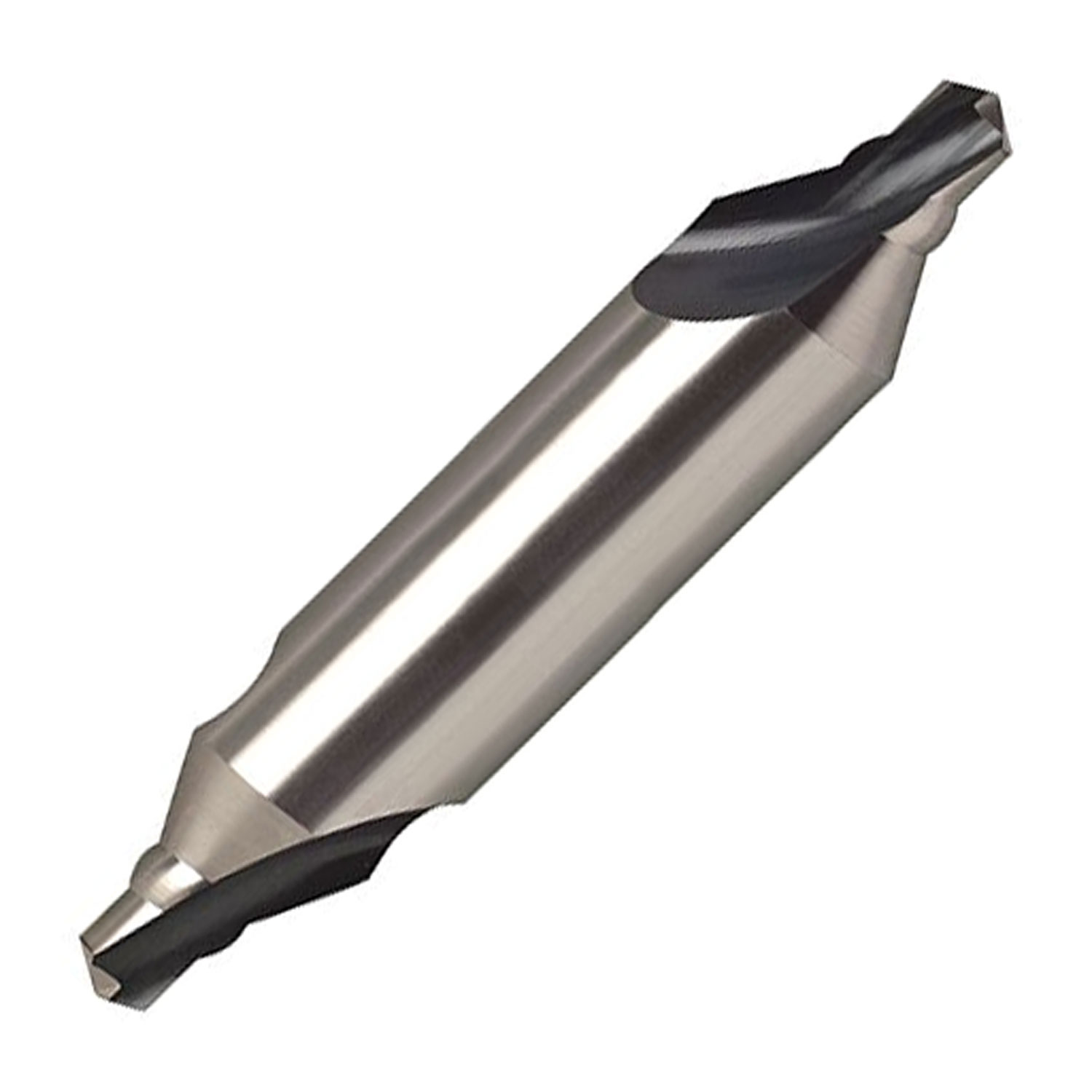 2.0mm Point Right Hand Cut, 60? Angle Center Drill, DIN Standard 333 - Form A With Reinforced Neck, Bright HSS 7.5mm LOC,40mm OAL,5mm Round Body Doubled Ended Series No. 590, Order Code 02.000, Guhring Part #9005900020000