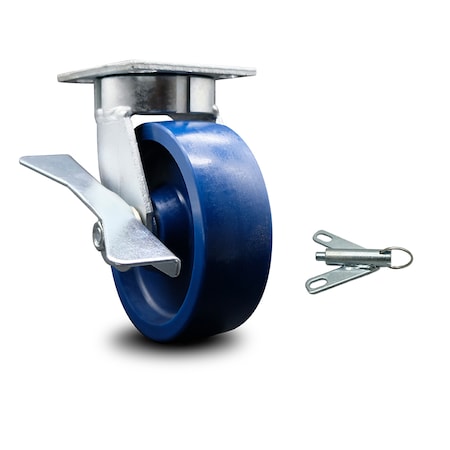 6 Inch Kingpinless Solid Poly Wheel Swivel Caster with Brake and Swivel Lock SCC