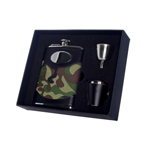 | Feature | It is 8 oz. Stainless Steel Flask with Green Camouflage and Leather |